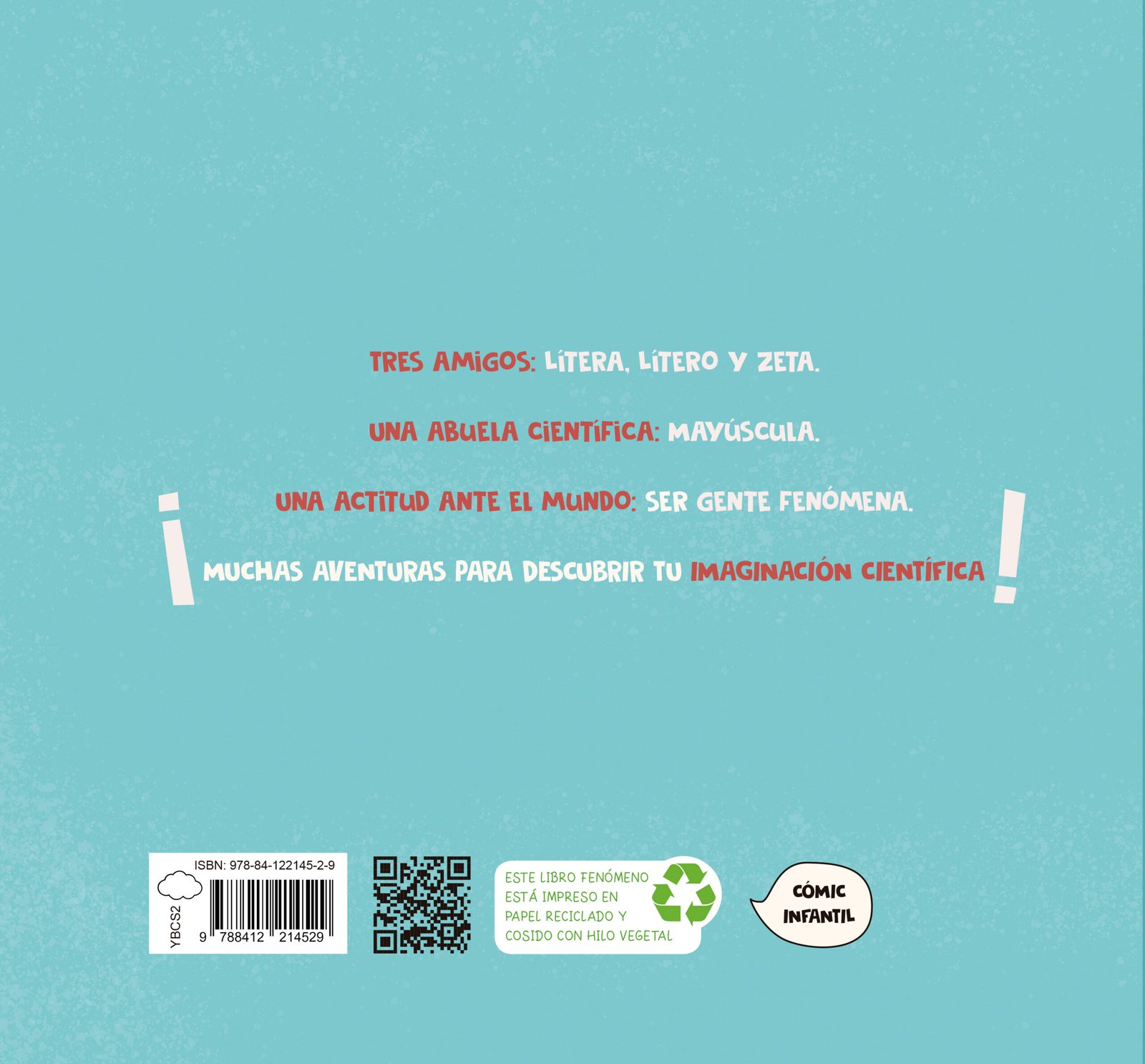 Tres amigos: Lítera, Lítero y Zeta. Una abuela científica: Mayúscula. Una actitud ante el mundo: ser gente fenómena. íMuchas aventuras para descubrir tu imaginación científica! Como dice Mayúscula: «La ciencia no solo necesita de probetas, líquidos y herramientas, sino también de la imaginación de sus científicos».Libro cómic de las aventuras de sus personajes para descubrir su